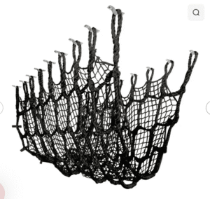 - 1-3/4″ sq mesh bedding net lashed to inside to fill gaps and provide a soft play area