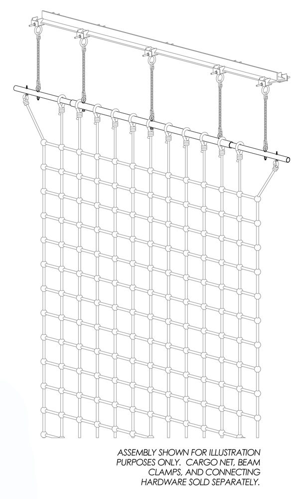 The UHB-1014 Universal Cargo Net Hanging Bar is a universal telescoping support assembly to suspend a 10′, 12′, or 14′ wide indoor cargo net along a continuous beam. The hanging bar is suitable for both CN and HD Series Cargo Nets.